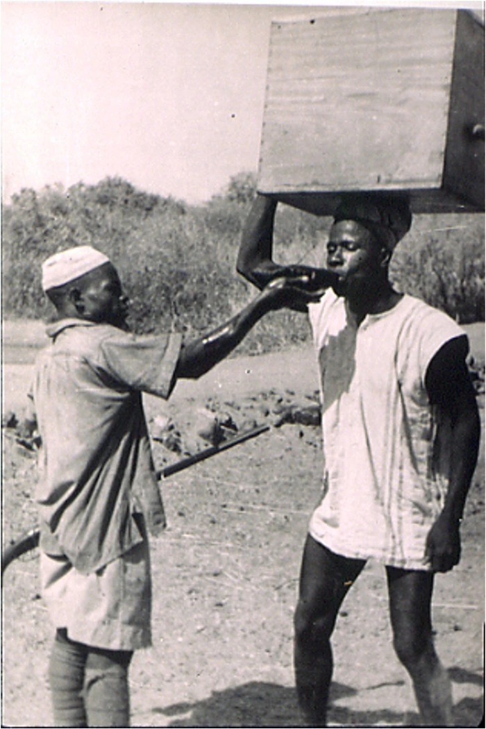 In due course Wa, some 500 miles inland was reached, not without delays due to roadblocks caused by fallen trees and broken culverts. Dr. Maurice Browne, the Colonial Medical Service Officer, entertained the party and put at its disposal his local knowledge which was of the greatest value since those on the expedition had but slight knowledge of local bush conditions. At the time he was strenuously engaged with an epidemic of cerebro-spinal meningitis in addition to the usual diseases such as trypanosomiasis, malaria, yaws, schistosomiasis, and dracontiasis, all of which are very common. Captain Holden was able to assist in controlling an outbreak of anthrax.