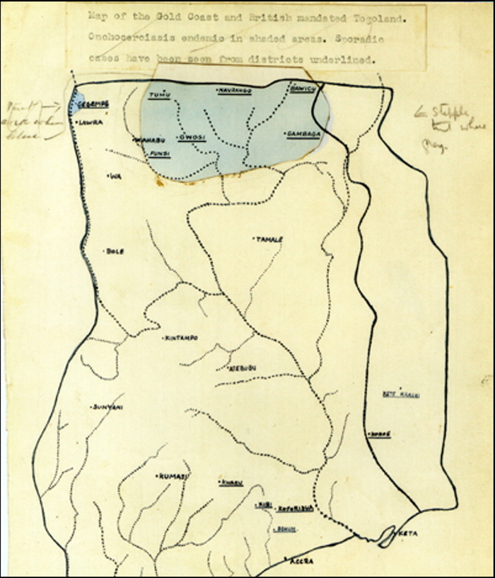 Funsi is a small town in the Wa district of North Ghana. The following is Harold Ridley’s own account of the trip and the work in Funsi. It is transcribed from pages 33 to 41 in his paper on Ocular Onchocerciasis.
